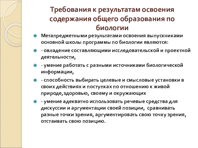 Слайд 56Требования к результатам освоения содержания общего образования по биологии