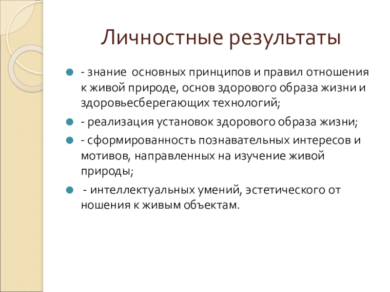 - сформированность познавательных интересов и мотивов, направленных на изучение живой природы;
