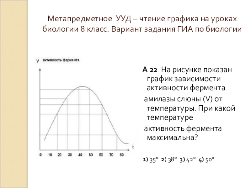 Слайд 20Метапредметное УУД – чтение графика на уроках биологии 8 класс. Вариант