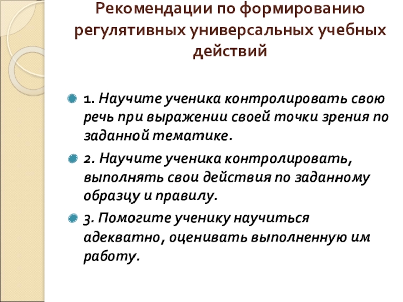 Слайд 54Рекомендации по формированию регулятивных универсальных учебных действий