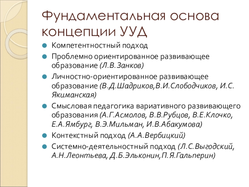 Системно-деятельностный подход (Л.С.Выгодский, А.Н.Леонтьева, Д.Б.Эльконин,П.Я.Гальперин)