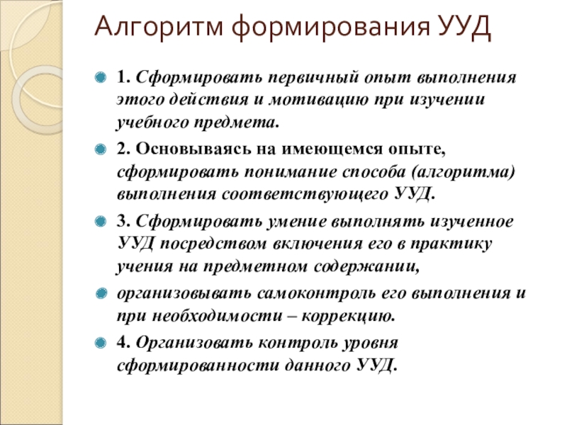2. Основываясь на имеющемся опыте, сформировать понимание способа (алгоритма) выполнения соответствующего УУД.
