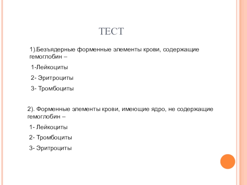 2). Форменные элементы крови, имеющие ядро, не содержащие гемоглобин –