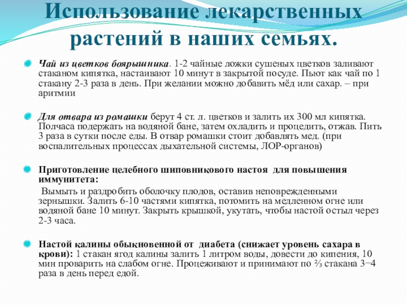 Наша область обладает значительными запасами и разнообразием лекарственных растений и задача заключается в том, чтобы эти запасы использовались рационально. Некоторые из них мы рассмотрели.