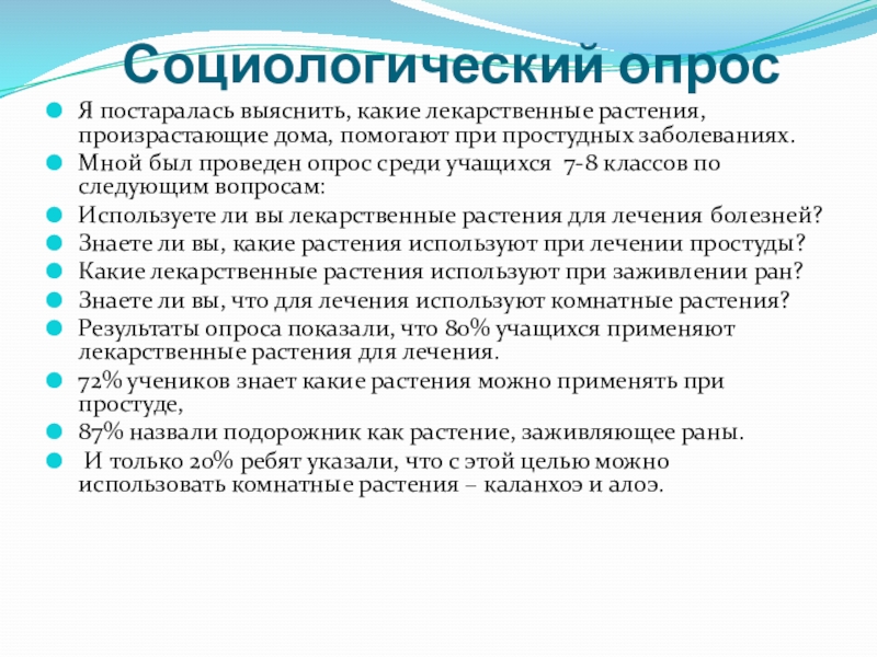 Результаты опроса показали, что 80% учащихся применяют лекарственные растения для лечения.
