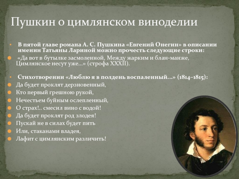 Пушкин о цимлянском виноделии