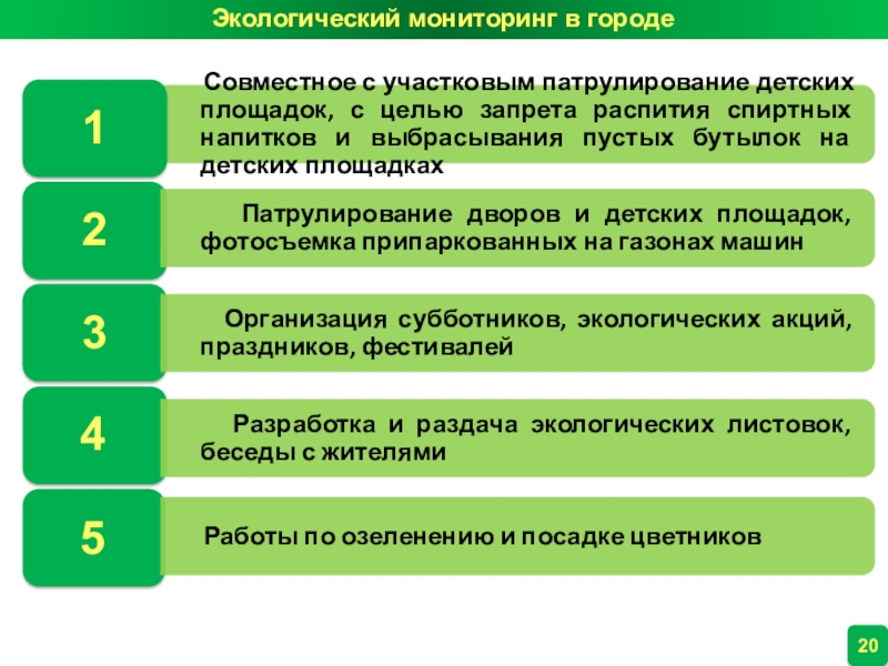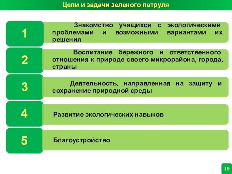 Слайд 5Формы работы «Зеленый патруль» по реализации проекта:1.Создание зеленых уголков в школьных