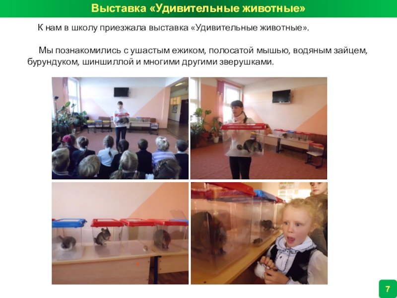 Мы познакомились с ушастым ежиком, полосатой мышью, водяным зайцем, бурундуком, шиншиллой и многими другими зверушками.