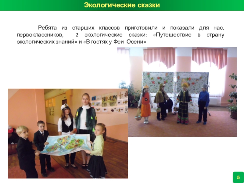 для нас, первоклассников, 2 экологические сказки: «Путешествие в страну экологических знаний» и «В гостях у Феи Осени»