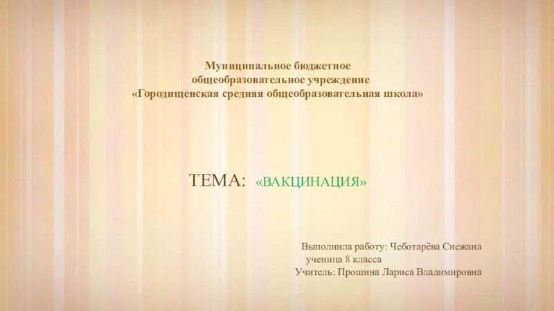 Муниципальное бюджетное  общеобразовательное учреждение «Городищенская средняя общеобразовательная школа»ТЕМА: «ВАКЦИНАЦИЯ»Выполнила работу: Чеботарёва Снежана