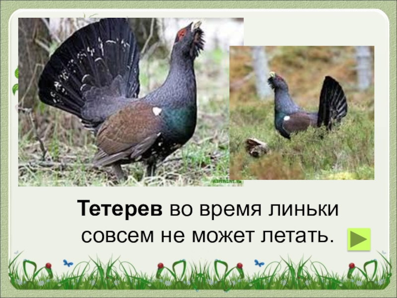 Тетерев во время линьки совсем не может летать.