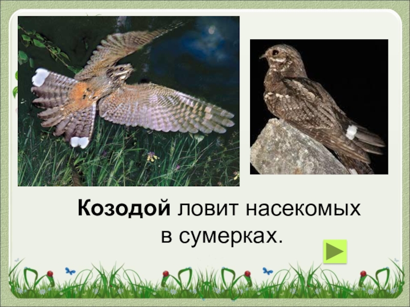 Слайд 33Козодой ловит насекомых