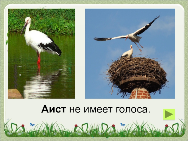 Слайд 30Аист не имеет голоса.
