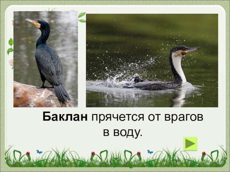 Слайд 26Баклан прячется от врагов