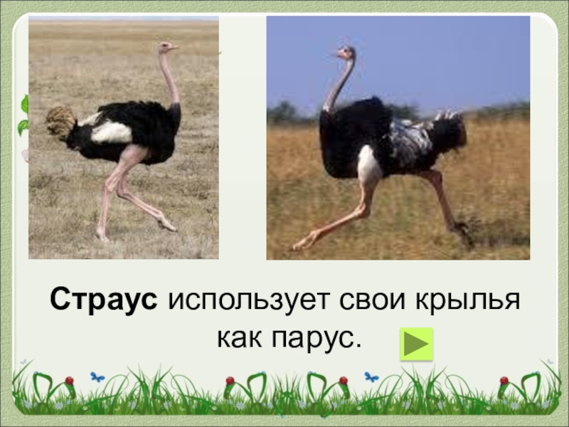 Слайд 41Страус использует свои крылья