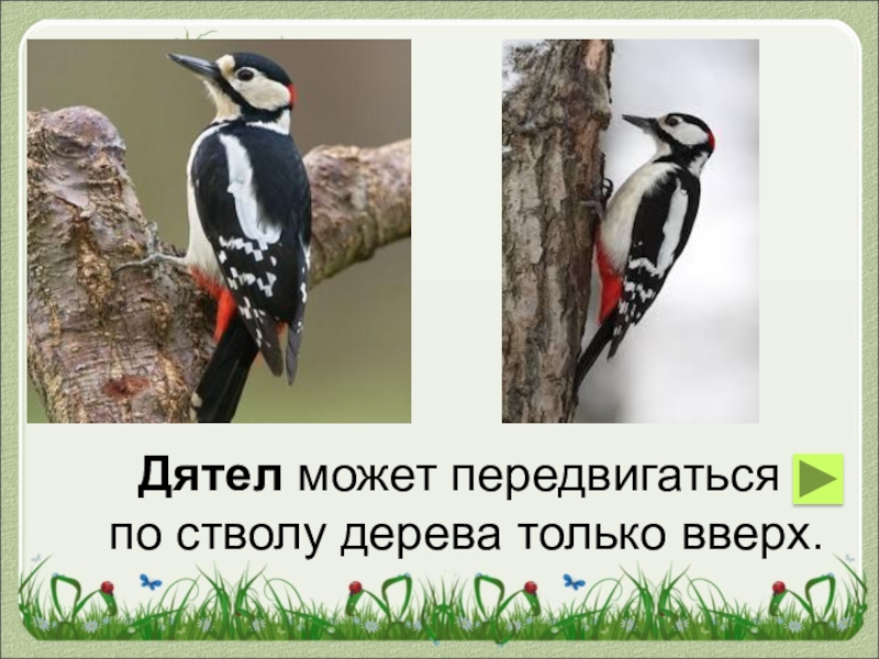 Слайд 31Дятел может передвигаться