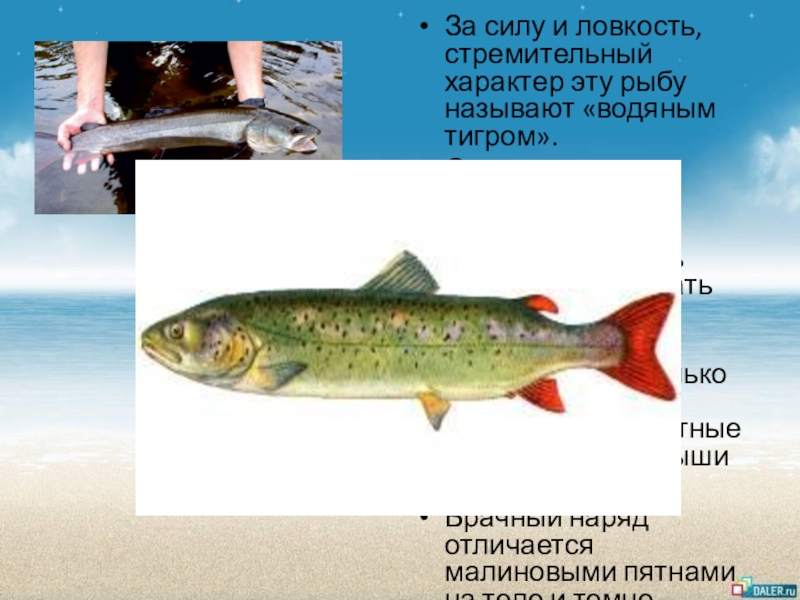 Слайд 8За силу и ловкость, стремительный характер эту рыбу называют «водяным тигром».