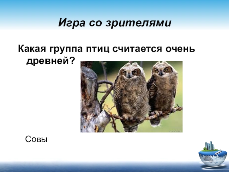 Игра со зрителямиКакая группа птиц считается очень древней?Совы