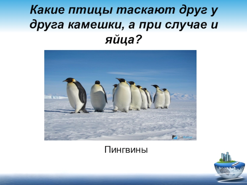 Слайд 5Какие птицы таскают друг у друга камешки, а при случае и