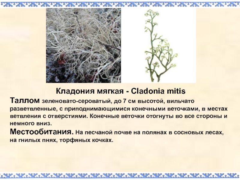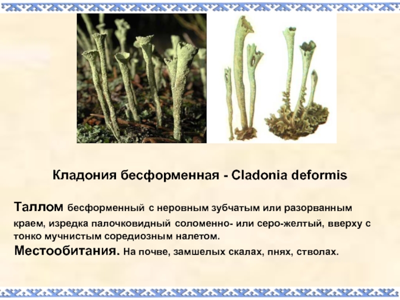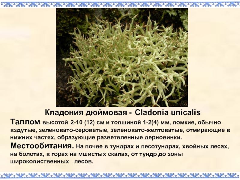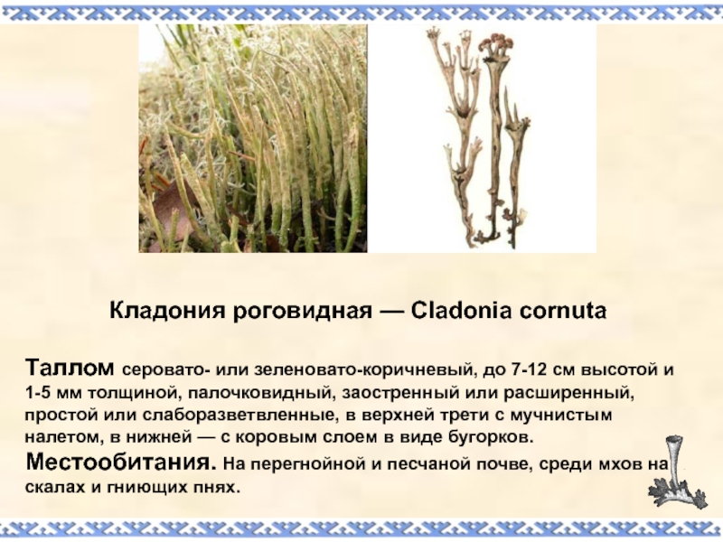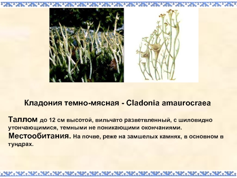 Слайд 13Кладония темно-мясная - Cladonia amaurocraea