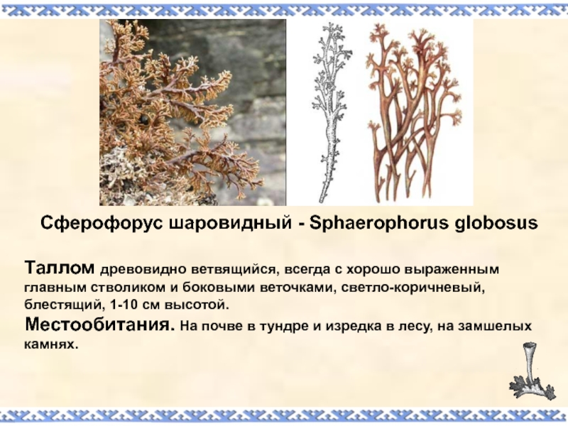 Таллом в виде прямостоячих, сильноразветвленных, грубых,