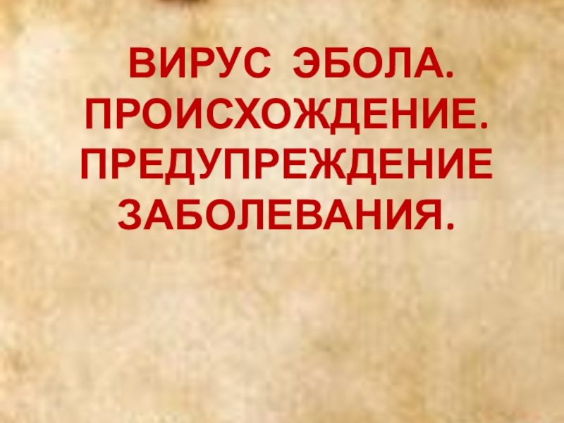 Слайд 1 ВИРУС ЭБОЛА. ПРОИСХОЖДЕНИЕ. ПРЕДУПРЕЖДЕНИЕ ЗАБОЛЕВАНИЯ.