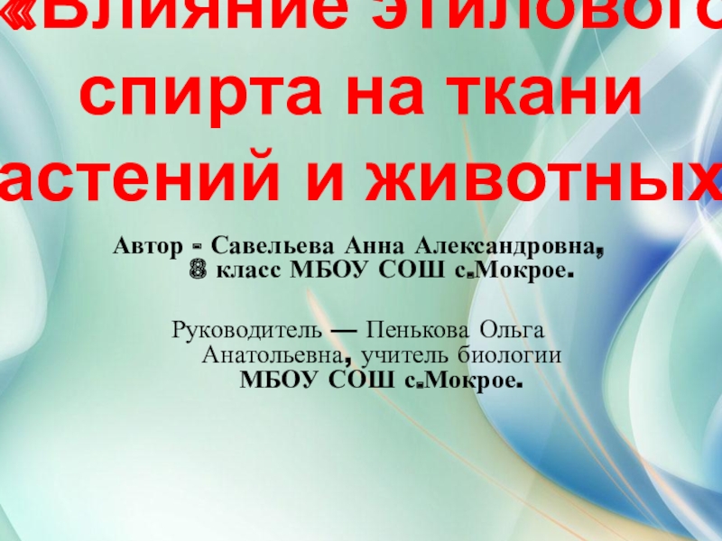 Руководитель — Пенькова Ольга Анатольевна, учитель биологии МБОУ СОШ с.Мокрое.