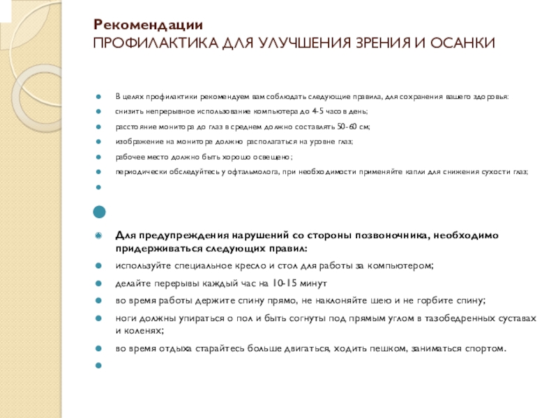 3. Разработать методики по профилактике заболеваний, связанных с работой за компьютером.