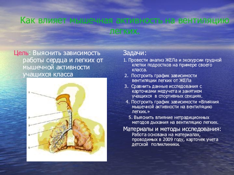 Слайд 1Как влияет мышечная активность на вентиляцию легких.