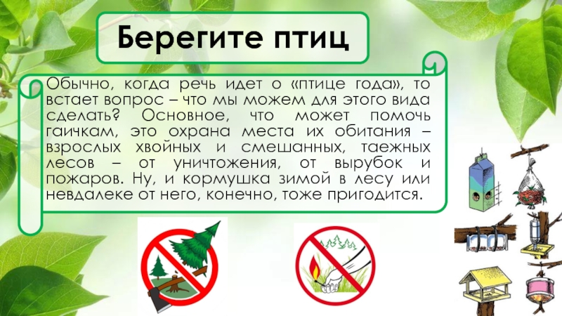 Не срубайте деревья, если на них есть гнезда с птенцами. Даже если вы захотите срубить только одну ветку, вы можете сильно напугать пернатых жителей. И тогда птицы-родители покинут свое гнездо, бросив потомство на произвол судьбы.