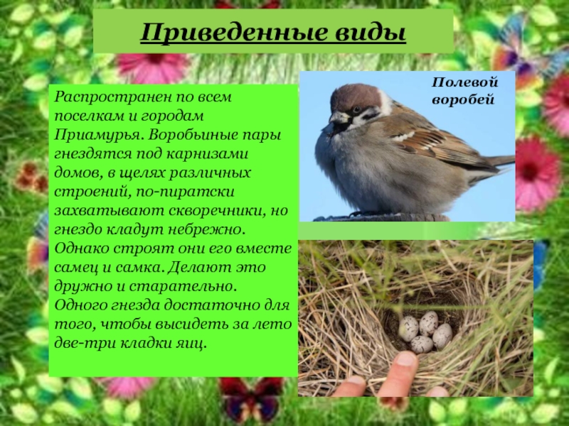 Распространен по всем поселкам и городам Приамурья. Воробьиные пары