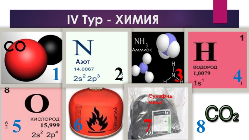 IV Тур - ХИМИЯСО12345678Сульфид медиАммиакАзот