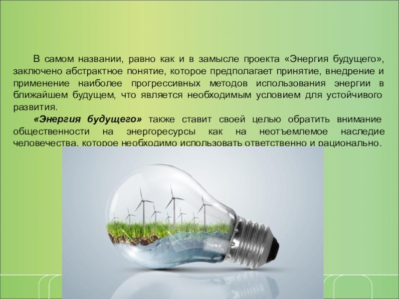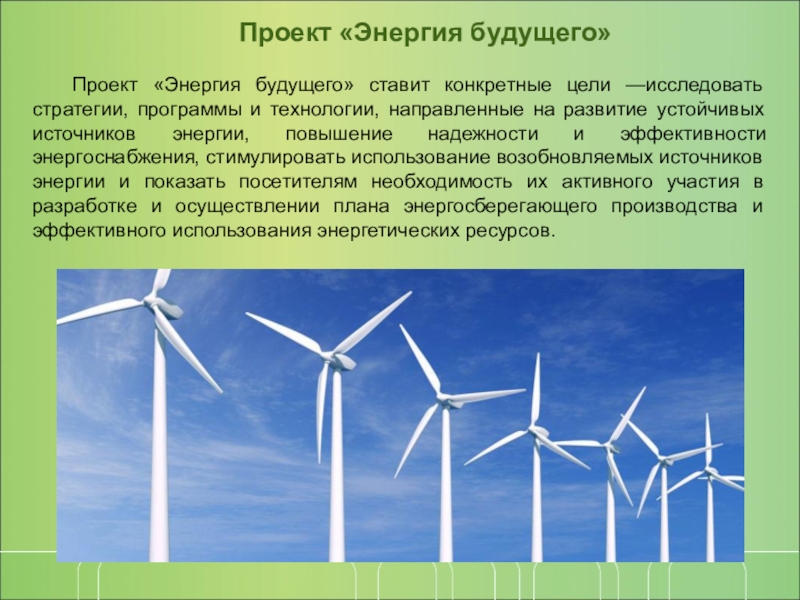 • обеспечение всеобщего доступа к устойчивым источникам энергии