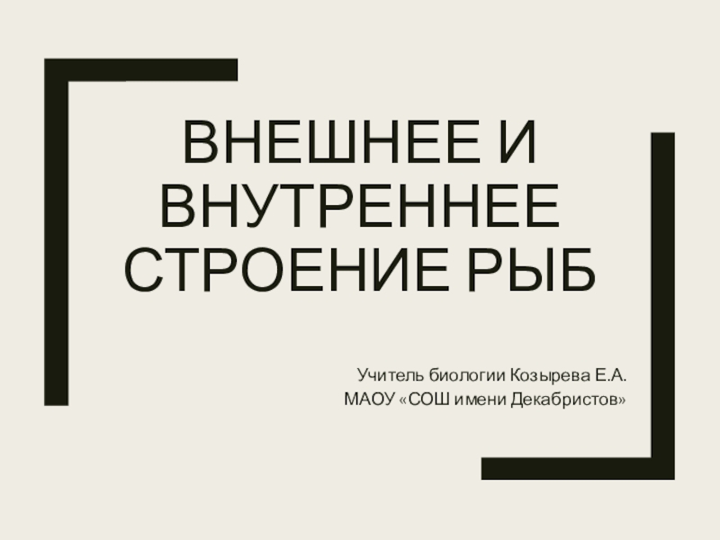 Внешнее и внутреннее строение рыбУчитель биологии Козырева Е.А.МАОУ «СОШ имени Декабристов»
