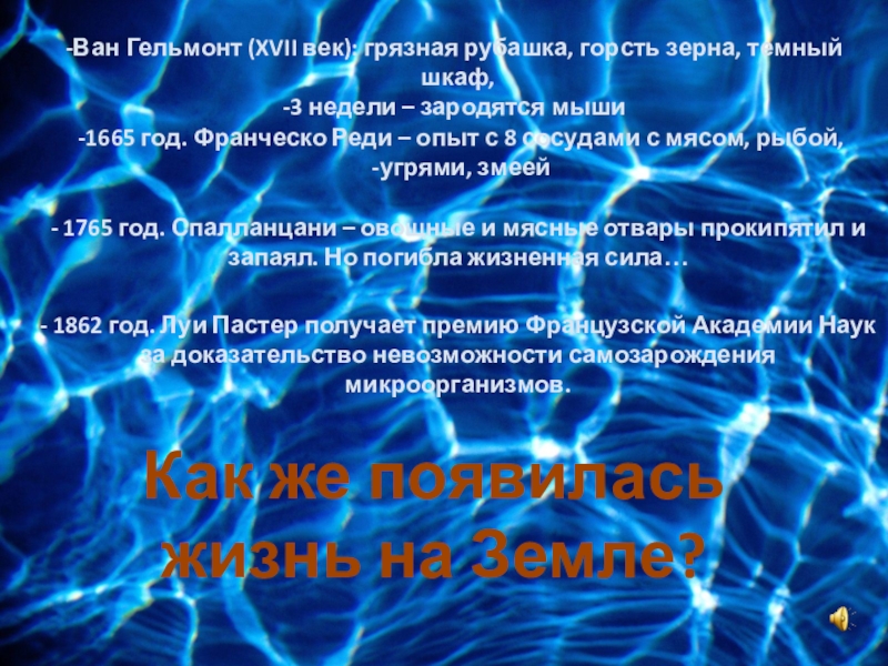 - 1765 год. Спалланцани – овощные и мясные отвары прокипятил и запаял. Но погибла жизненная сила…