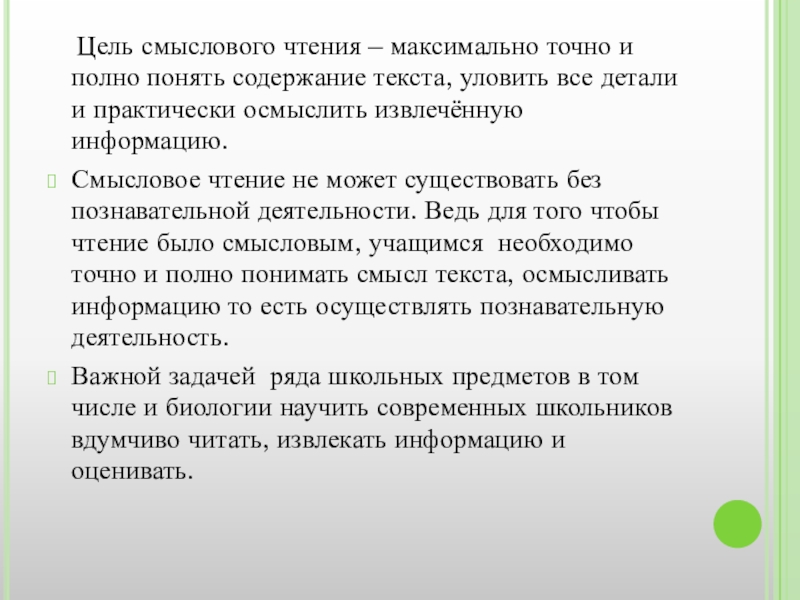 Слайд 2 Цель смыслового чтения – максимально точно и полно понять
