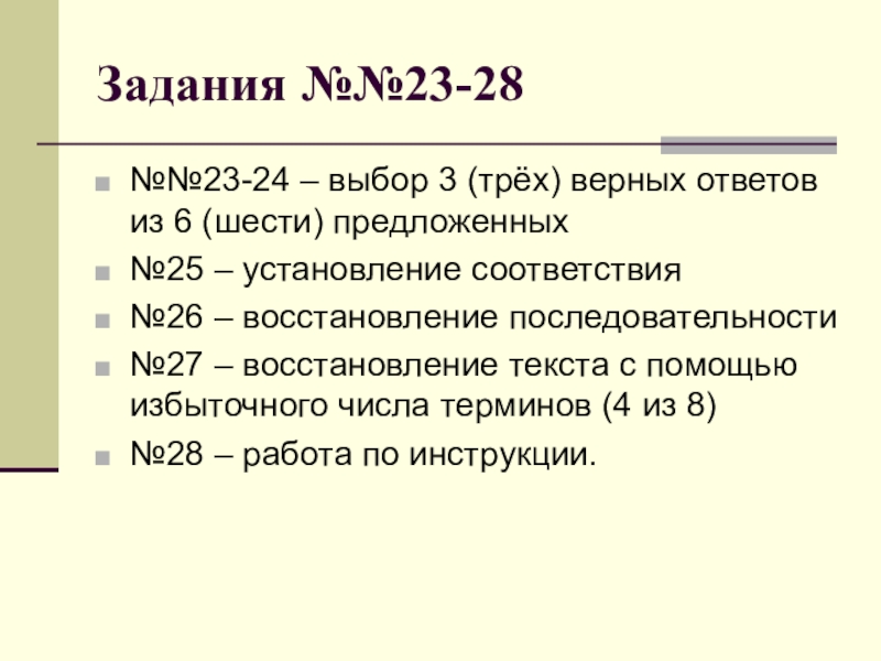 Задания №№ 23-28 требуют ответа в виде последовательности цифр и оцениваются в два балла,