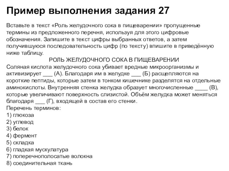 Вставьте в текст «Роль желудочного сока в пищеварении»