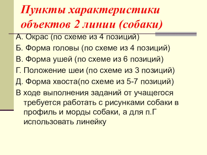 Слайд 25Пункты характеристики объектов 2 линии (собаки)