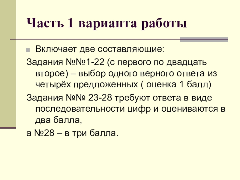 Часть 1 – это 28 заданий, которые предполагают краткий