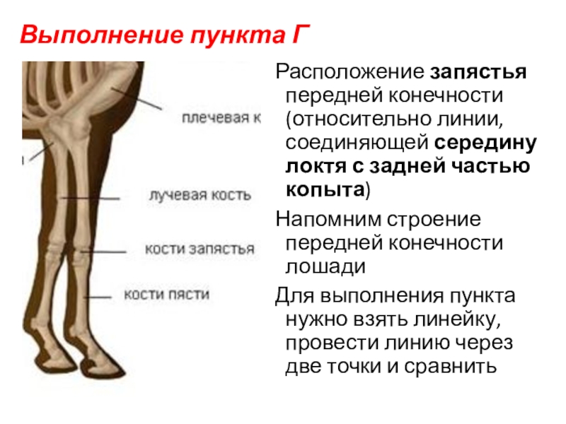 Г. Расположение запястья передней конечности (по схеме из 3 позиций)