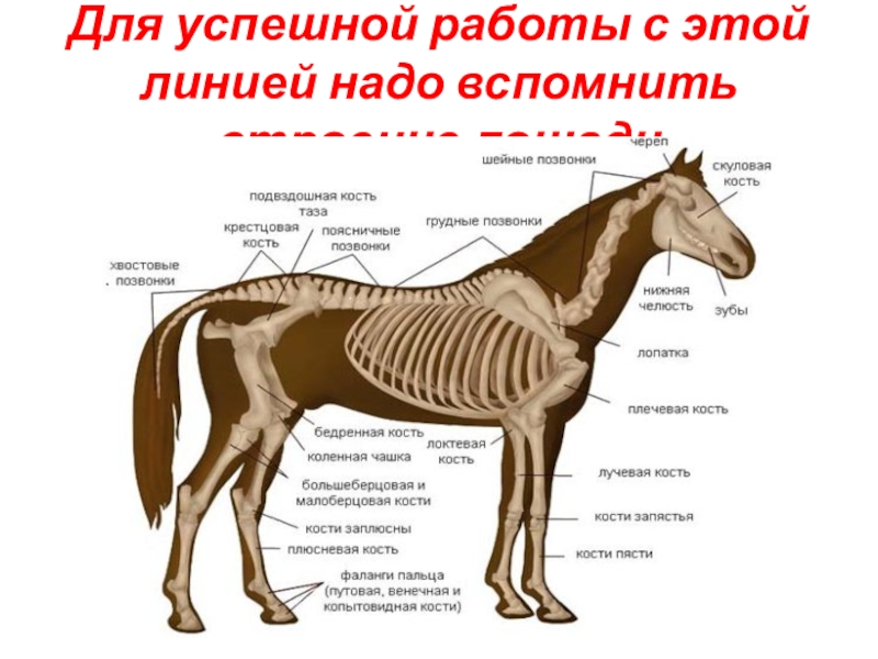 Слайд 33Для успешной работы с этой линией надо вспомнить строение лошади