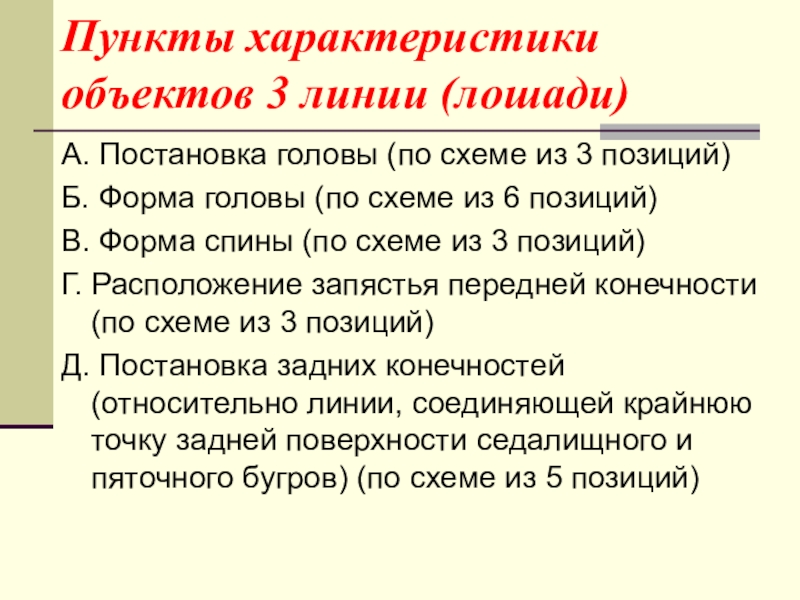 Слайд 32Пункты характеристики объектов 3 линии (лошади)