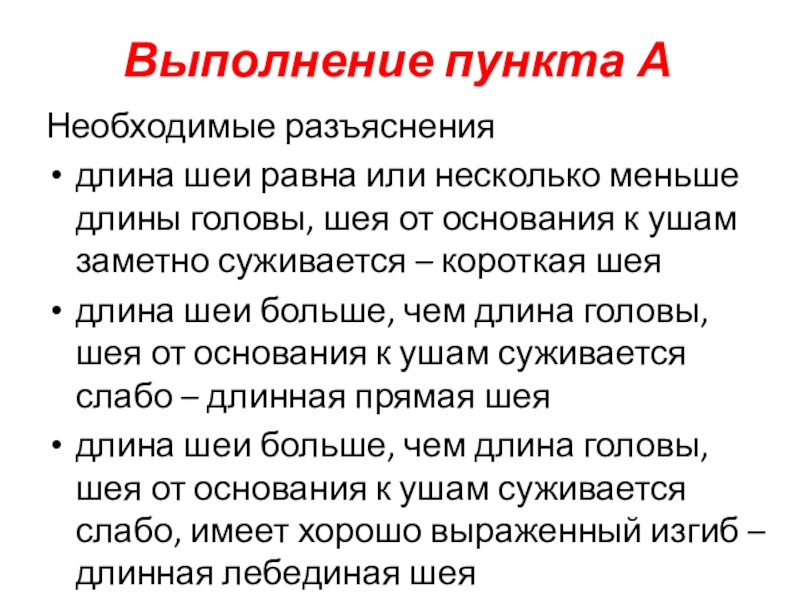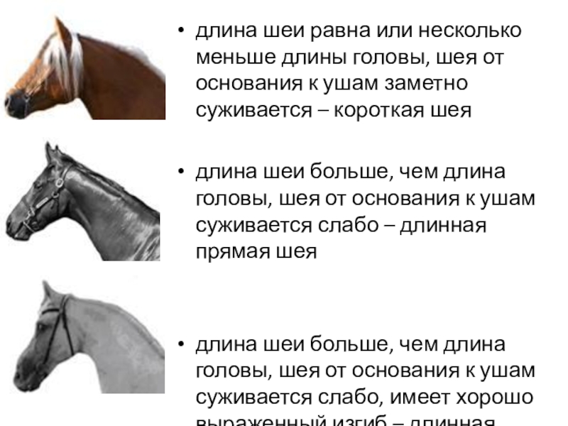 Слайд 35длина шеи равна или несколько меньше длины головы, шея от основания