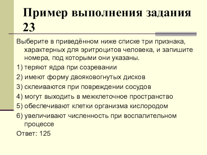 для эритроцитов человека, и запишите номера, под которыми они указаны.