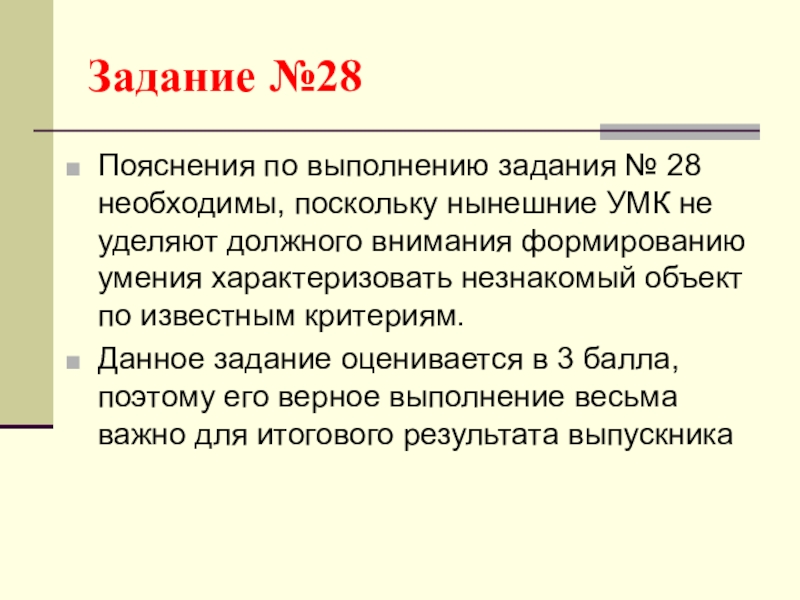 Пояснения по выполнению задания № 28 необходимы, поскольку нынешние УМК