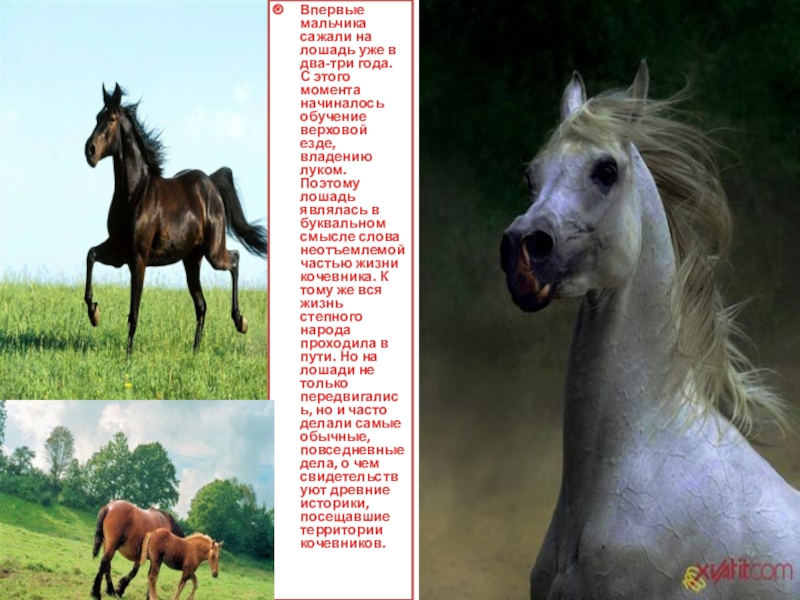 Слайд 22Впервые мальчика сажали на лошадь уже в два-три года. С этого