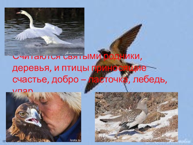 Слайд 15Считаются святыми родники, деревья, и птицы приносящие счастье, добро – ласточка,
