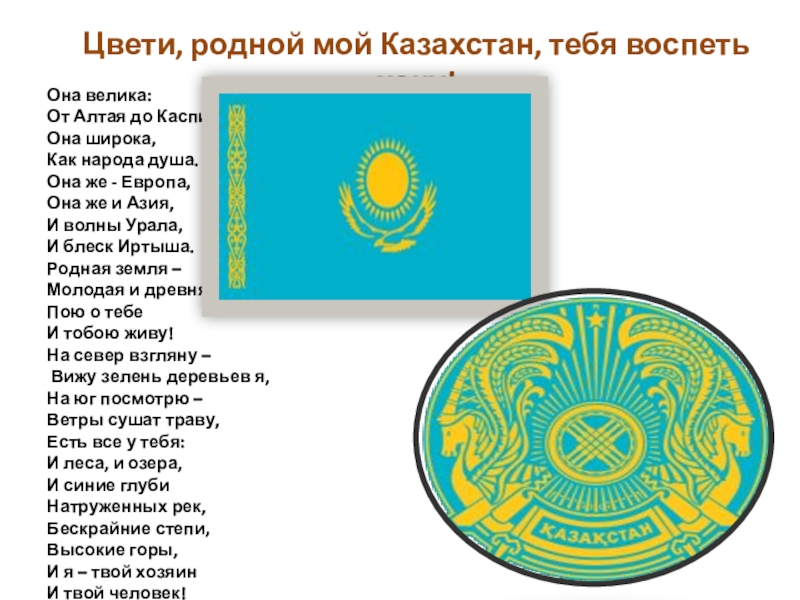 Слайд 2Цвети, родной мой Казахстан, тебя воспеть хочу!