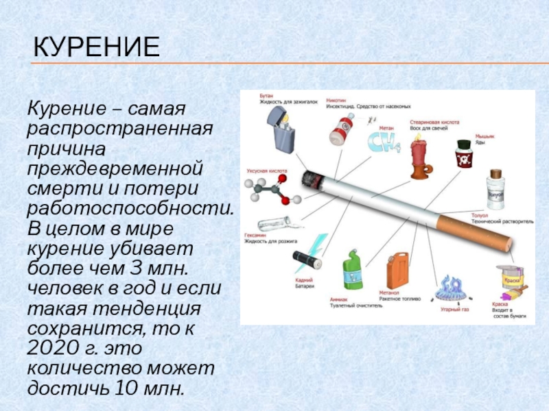 Курение – самая распространенная причина преждевременной смерти и потери работоспособности.
